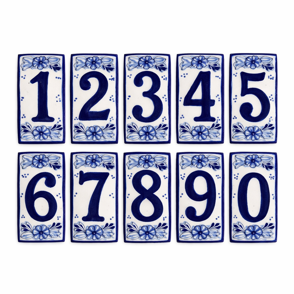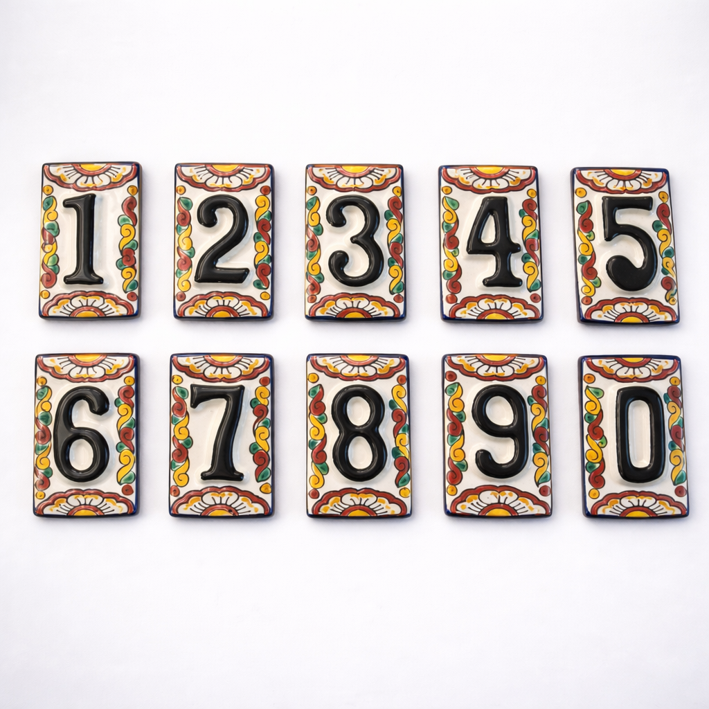 El número domiciliar de Talavera es una pieza artesanal elaborada y pintada a mano por artesanos mexicanos, utilizando técnicas tradicionales de la auténtica Talavera poblana. Cada número está diseñado sobre un azulejo cerámico individual, ideal para identificar y decorar la entrada de casas, negocios o espacios arquitectónicos.