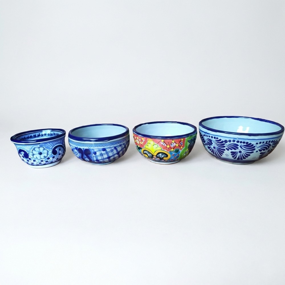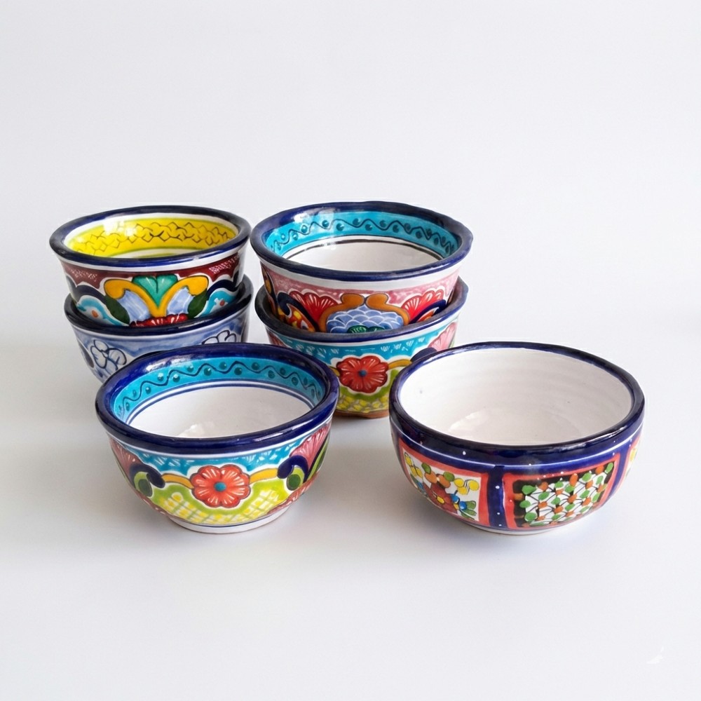 El tazón de Talavera de 12 cm es una pieza artesanal elaborada y decorada a mano por artesanos mexicanos, siguiendo técnicas tradicionales que han sido preservadas por generaciones. Su tamaño compacto y forma profunda lo hacen ideal para servir porciones individuales con una presentación elegante y auténtica.